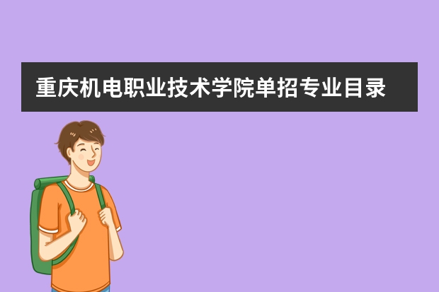 2015年重庆机电职业技术学院单招专业目录重庆机电职业技术学院2015年单招专业2015年重庆机电职业技术学院单独招生专业有:机械设计与制造、模具设计与制造、电梯工程技术、焊接技术及自动化、建筑电气工程技术、汽车制造与装配技术、汽车改装技术、建筑工程管理、工程监理、物流管理、报关与国际货运、计算机信息管理(移动互联网运营方向)、网络系统管理(物联网应用方向)、家政服务(婴幼儿早期教育方向)、